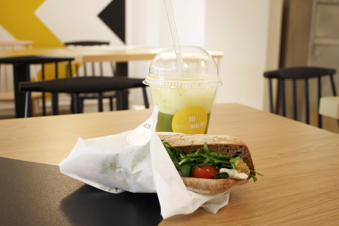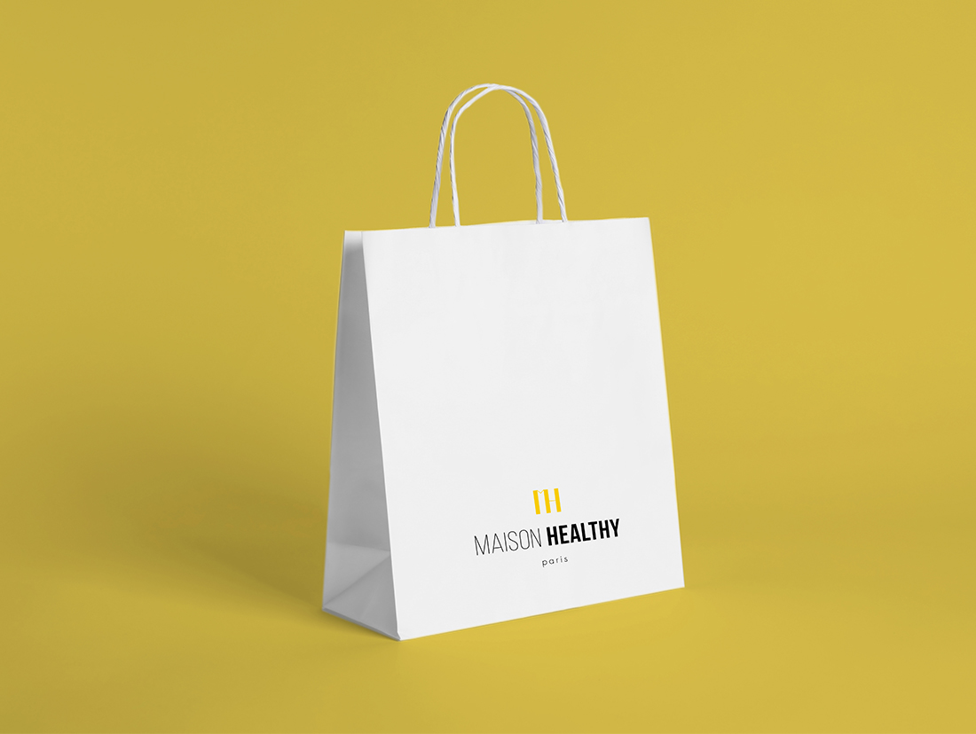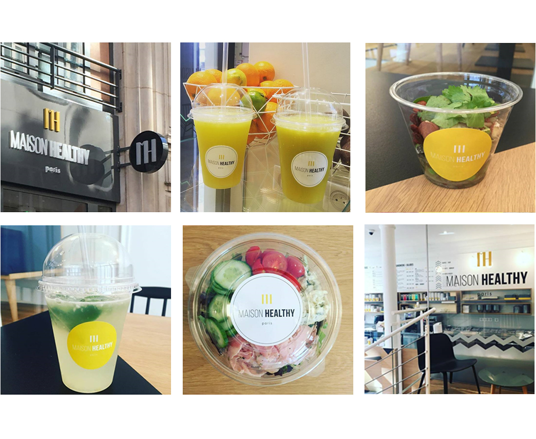 Conception et création de l’identité visuelle de Maison Healthy, pour une restauration fraiche, saine, préparée à la demande.